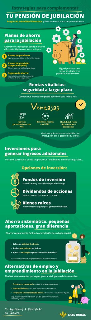 | Planes de Pensiones | 4-6% anual (neto) | Media-Alta | Baja (penalizaciones) | Diferido hasta retiro |